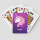 Um unicórnio branco, cor-de-rosa e roxo, com cara de jogar cartas. Faz um presente tão divertido para uma garota. Personalize com o nome da sua garota. Projetado para você pelo Blackberry Boulevard.