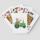 Uma vaca dirigindo um trator verde. Este design parece realmente eficaz com estas Cartas de Brincar