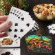 Cartões de jogar com uma pintura de vidro colorido de cogumelos vermelhos em uma floresta mística