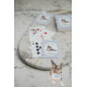 Essas cartas de baralho personalizadas são uma maneira encantadora de incluir seu cachorro nos detalhes do seu casamento sem sobrecarregar a estética geral. A parte traseira da carta apresenta uma ilustração de um Australian Shepherd em estilo aquarela suave, emoldurada por um padrão clássico de gingham azul, criando um visual que parece atemporal, pessoal e elegantemente descomplicado.
