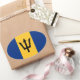 Etiqueta oval com a bandeira nacional de Barbados. Bandera de Barbados do la do engodo da etiqueta.