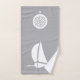 Barco de vela e bússola em cor prateada sólida (aaa9ad)fundo. Projetado por Alma Wad para aqueles que gostariam de ter um efeito visual neutro para um banheiro. Você pode personalizar esses itens com a letra de sua escolha.