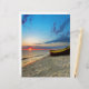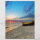 Um pequeno barco numa praia tropical.