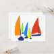 Barcos de vela coloridos brilhantes em vermelho, verde, amarelo e azul.