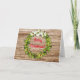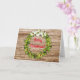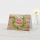 Arte original de madeira de celeiro rústico com coroa e flores brancas de poinsettia, processada em estilo gráfico ilustrado. Frente diz "Feliz Natal!" e dentro diz "Que a mensagem eterno do Natal preencha seu coração e casa com alegria agora e durante o próximo ano!" para uma saudação de Natal atenciosa. Você pode adicionar mais texto como quiser ou sair como está!