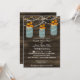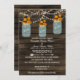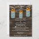 Rustic Barnwood, luzes de cordas balançando com folhas de carapaça de outono em convites de casamento de jarro de pedras. Produtos correspondentes também disponíveis.