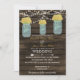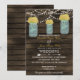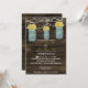 Rustic Barnwood, luzes de cordas balançando com flores amarelas em convites para casamento de mason jar. Produtos correspondentes também disponíveis.