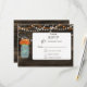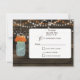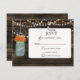 Rustic Barnwood, luzes de cordas balançando com flores laranja em um RSVP de casamento Mason jar. Produtos correspondentes também disponíveis.