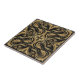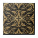 This ceramic tile showcases an opulent Baroque-inspired design with intricate swirling gold patterns on a rich black background. The symmetrical arrangement features flowing curves, delicate floral accents, and diamond-shaped central motifs, creating a sense of movement and elegance. The combination of bold black and radiant gold highlights the luxurious craftsmanship, making it an ideal choice for decorative walls, floors, or accent pieces that exude timeless sophistication.
