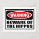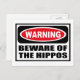 Cuidado com o cartão-postal HIPPOS que você pode personalizar em www.WarningSignShirts.com e apresenta um sinal de aviso vermelho e preto e BEWARE DOS HIPPOS em letras negrosas para avisar o mundo. Você também pode personalizar seu próprio sinal de aviso Cartão postal com o texto desejado.
