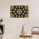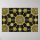 Digital mandala array made wiht photos of yellow and white barrel cactus flowers on a gray thorn background as a poster.