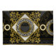 Fronteira perfeita com o elemento barroco ouro, motivo grego num fundo negro. Ilustração. Barroco e correntes a preto. elegância eterno em padrão! elegância barroca, elementos ouros a preto para um toque real. barroco, grego, abstrato, luxo, fundo, padrão, ilustração, flor, moda, quadro, vintage, ouro, floral, retrô, preto, sem costura, geométrico, convite, tecido, ornamento