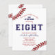 8.º Convite de Aniversário de Baseball. Batedor! Este design de beisebol festivo é divertido esportivo para o oitavo aniversário do seu filho. O design apresenta um fundo de baseball.
