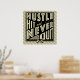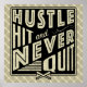 Baseball Hustle, Bata E Nunca Saia De Impressão. O texto diz: Hustle, Hit And Nunca Sair, com o ícone cruzado de tacos de beisebol e softball.