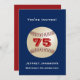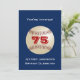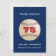 Uma bola de beisebol sobre um fundo azul escuro enfeita este singular e divertido 75º Convite à Celebração de Aniversário. O inverso tem letras brancas sobre fundo vermelho. Você pode facilmente alterar o texto para nome, idade, evento, data etc. Os fãs do esporte vão adorar! Todos os Direitos Reservados © 2014 Alan & Marcia Socolik.