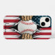 Show off your love for the game and your country with this striking personalized baseball phone case. The dynamic design features a "ripped" American flag effect, illustrating powerful hands tearing back the Stars and Stripes to reveal a classic white baseball underneath.