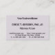 Este cartão de visita básico e mínimo apresenta o nome de um profissional, um nome de empresa ou organização, um título profissional e informações de contato que são personalizáveis. Cartões de visitas como estes podem ser utilizados por um profissional como um advogado, um advogado ou um advogado.