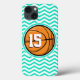 design de basquete laranja legal e fofo no aqua, padrão de faixas de diafragma verde-turquesa e branco. Personalize com número de camisa! presente de excelente para jogador de basquete ou fã de esportes!