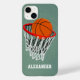 Design personalizável com uma imagem de uma bola de basquete laranja e um aro de rede com um fundo de efeito impresso para se parecer com cimento. Adicione seu nome a um presente de basquete exclusivo e personalizado. Perfeito para a pessoa que ama basquete!