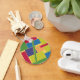 Chaveiro com Bassoon sobre blocos grandes e ousados de cor.