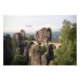 Foto impressão da ponte Bastei (Bastei Brücke) sobre o rio Elba, que liga as icônicas formações rochosas das Montanhas Elba Sandstone, perto de Dresden, no parque nacional Suiça Saxônica (Sächsische Schweiz), na Alemanha Oriental.