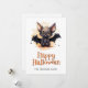 Placa Feliz de Halloween com uma ilustração de aquarela fofa de um morcego sorridente. Personalize facilmente este cartão de Dia das Bruxas para crianças com o seu nome familiar e texto.