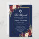 Bat Mitzvah Watercolor Burgundy Marsala Floral Blue Dourado Cartão de Convite