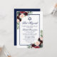 Bat Mitzvah Watercolor Burgundy Marsala Blue Cartão de Convite Floral