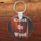 Chaveiro de textura de madeira simples e irrealista. Neste chaveiro é aditado um texto divertido "Bata na Madeira", em letras brancas contrastantes. O aspecto e a textura da madeira lisa e brilhante, não a madeira real. Mantenha essas chaves legal por aí e dê presentes para muita sorte para seus amigos e família!