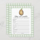 "Um pouco de batata está a caminho". Celebrar com esta festa de chá de fraldas de batatas de desenho animado! Batata bonitinha de aquarela com cara de bebê. Gaiola verde. Respostas: CRAVINGS, CRYING, PACIFIER, FRASCO, LUZ NOTURNA, LULLABY, STROLLER, EPIDURAL, BURP, ALTA CADEIRA, SACO DE FRALDA, SWADDLE