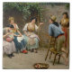 Esta design apresenta uma pintura do artista italiano Eugene de Blaas (1843-1931). Ela mostra um grupo de mulheres trabalhando em algumas costuras no jardim; elas estão conversando com um garoto que está se inclinando na parte de trás de uma cadeira de madeira. Há alguma fruta numa tigela mais vadia no chão, talvez maçãs. As mulheres parecem felizes e animadas enquanto o menino as entretem com seu bate-papo. Há também outra mulher ao lado de um muro de tijolos nas proximidades com os braços akimbo. Ao fundo, pode-se ver uma pergola com o vinho crescendo sobre ela. O chão está empoeirado, mas as mulheres estão vestindo vestidos elegantes, e o menino está vestindo uma camisa azul e um chapéu tradicional, com uma bandana ou cachecol envolto em seu pescoço. A arte original foi pintada em 1905.