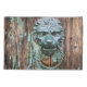 Esta imagem de aproximação mostra um fascinante batedor de porta representando a cabeça de leão, com grão de madeira, listras escuras, nós e lascas de tinta turquesa no fundo, que contribuem lindamente para seu encanto rústico e atração natural. Este design eterno lembra o artesanato do mundo antigo e adiciona um toque de calor e caráter a qualquer decor. A tinta desbotada na madeira melhora esse efeito criando um olhar texturizado e em camadas que evoca a história e histórias contidas em suas fibras. Tal design introduz um senso de natureza e tranquilidade. Com seus tons de terra e o sentimento autêntico, esse tipo de sotaque doméstico e vivo transforma seu espaço em um retiro sereno, combinando elementos naturais e estética.