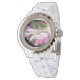 Foto de azalea rosa e verde com texto lendo: "Beating the Odds and love it!". Perfeito para sobreviventes do cancer da mama (ou outra doença). Excelente para angariadores de fundos também. Este relógio seria um sucesso para eventos como viagens de casino, ou apenas por diversão!
