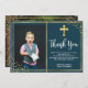 Simples, elegante, Dourado e Marinho, batismo e batismo Azul, obrigado cartas. Envie obrigados para a família e amigos com este obrigado personalizado moderno, seu cartão plano religioso. Ele apresenta o script "Obrigado", escrito à mão, em torno de dois faux gold foil frame e gold glitter confetti no fundo do marinho. Este belo cartões de agradecimentos fotográfico moderno também será perfeito para batismo / batizar / batizar cerimônia / confirmação e cartões de agradecimentos de comunhão sagrado para garotos ou meninas. 3354
