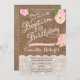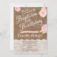 Um convite para Batismo e Aniversário (qualquer idade), rústico, mas bonito, para o grande dia da sua menina. O fundo é um efeito de burlap com "lace" escrevendo e em panelamento. Todos complementados por detalhes bonito de flor de cor-de-água rosa.