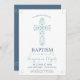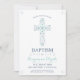 Este convite para o Batismo moderno ou para o Christening apresenta uma elegante cruz floral azul e verde. Ideal para a celebração religiosa de um bebê, pode ser personalizado com o nome do seu filho e os detalhes do evento. A cor de fundo também pode ser alterada para seu gosto.
