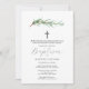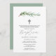 Batismo botânico religioso elegante ou batizantes armações de convites para o seu evento detalhe com um inseto de verde-rosmaninho. Seus detalhes de evento são definidos em uma elegante serifa tradicional e tipografia de script. Este convite neutro de gênero inclui uma escritura que você pode editar para incluir um verso de bíblia religiosa que se adequa às suas necessidades. A placa se reverte para uma cor verde de sábio complementar. O convite perfeito e neutro para primavera, verão, outono do outono, eventos temáticos rústicos ou jardins. Para ver mais modelos de batismo como esse visite www.zazzle.com/dotellabelle Art e design por Victoria Grigaliunas