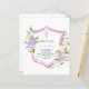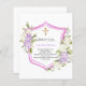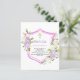 Um fundo branco. Decorado com uma crista rosa, flores rosa e roxas, florais. Com uma cruz ouro. Personalize e adicione um nome e detalhes. 1 folha = 1 convite impresso de borda a borda.