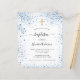Um batismo moderno e elegante, celebrando um menino. Fundo branco decorado com poeira azul brilhante e uma cruz ouro. Personalize e adicione um nome e detalhes da parte. Letras pretas coloridas.