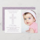 Este bonito cartão de batismo ou de convite batizante apresenta uma delicada cruz floral ilustrada e uma área para a fotografia da criança. Um convite perfeito para sua ocasião religiosa especial, o texto e a cor de fundo no verso podem ser facilmente personalizados de acordo com o seu gosto.