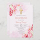 Batismo Floral Cor-de-Rosa, convite espanhol. Invitación de Bautizo para niña