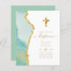 Batismo, Christening, 1º convite de comunião santa com uma cruz de ouro sagrado. Campos modelo de texto para ambos os lados para adicionar todos os detalhes do evento especial para filho ou filha.