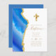 Batismo, Christening, 1º convite de comunião santa com uma cruz de ouro sagrado. Campos modelo de texto para ambos os lados para adicionar todos os detalhes do evento especial para filho ou filha.