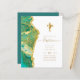 Batismo, Christening, 1º convite de comunião santa com uma cruz de ouro sagrado. Campos modelo de texto para ambos os lados para adicionar todos os detalhes do evento especial para filho ou filha.