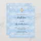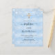 Para um batismo, comemorando um menino. Um fundo metálico azul falsa. Decorado com poeira azul esmaecida. Personalize e adicione o nome e os detalhes. O nome e o batismo são escritos com um estilo escrito à mão