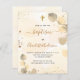 Um fundo de cor aquosa de ouro decorado com ouro eucalipto e pó dourado falso. Personalize e um nome e detalhes da cerimônia. Letras pretas e ouros coloridas. Traseira: fundo de cor d'água do ouro