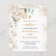 Para o batismo de 2 crianças. Um fundo branco decorado com verde de eucalipto, uma rosa branca, folhas de ouro e falsas gotas de ouro. Personalize e os nomes e detalhes da cerimônia infantil. Letras pretas e ouros coloridas. Sexo neutro. Traseira: fundo branco com quedas de brilho de falso ouro