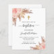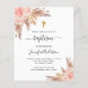 Um fundo branco. Decorados com ouro rosa e flores, rosas, erva-pampas e uma cruz de ouro, cor-de-rosa escamoteada. Personalize e adicione um nome e detalhes.