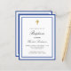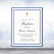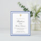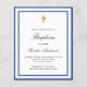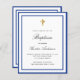 Um convite de batismo moderno e elegante. Um fundo branco decorado com molduras azuis reais. Personalize e adicione um nome e detalhes. Letras de cor preta.