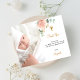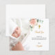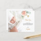 Um cartão de agradecimento de batismo moderno e elegante. Um fundo branco chic decorado com flores em tons de rosa água-marinha, dourado-rosado, folhagens de eucalipto e folhas douradas falsas. Personalize e adicione a foto da criança, nota de agradecimento e nome.